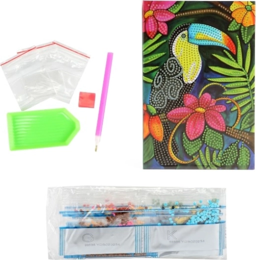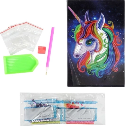 Tover je notitieboek om tot een uniek kunstwerk! Dit creatieve diamanten dagboek combineert een praktisch gelijnd notitieblok met leuk versieren met glinsterende steentjes. In de verpakking vind je alles wat je nodig hebt: diamanten steentjes, een speciale applicator, lijm en een sorteerbakje. Ideaal voor kinderen vanaf 5 jaar en volwassenen die houden van DIY, ontspannend knutselen en een uniek design.
