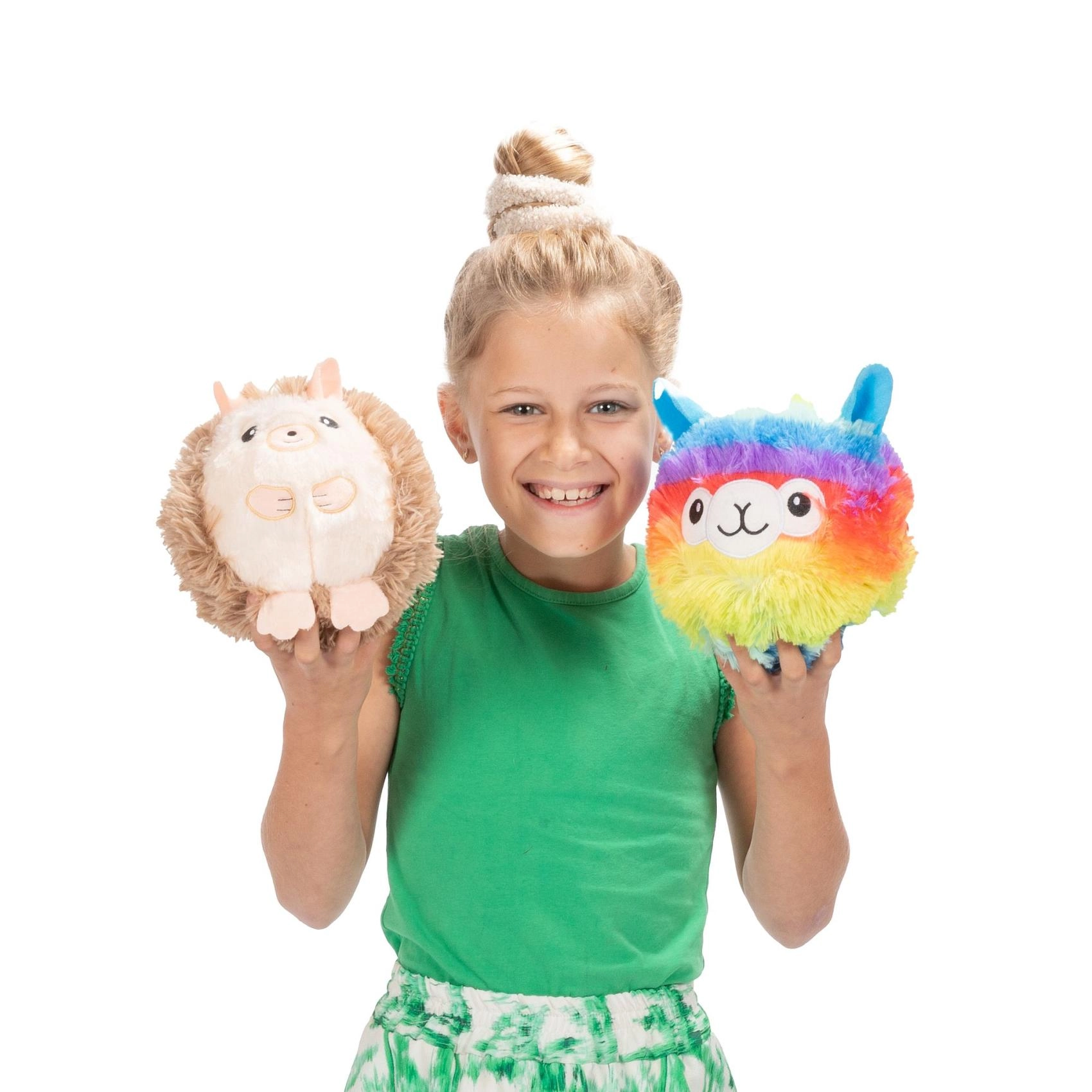 Deze lichte en veilige bal combineert de voordelen van een opblaasbare ballon met een zachte pluchen knuffel. Het oppervlak van zachte pluche voelt prettig aan, terwijl de opblaasbare binnenkant zorgt voor veerkracht en comfort bij vangen en rollen. Vrolijke dierenprints spreken zowel jongens als meisjes aan en stimuleren spontaan bewegen.