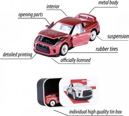 In de verpakking zit een elegant metalen verzamelblikje dat het model beschermt en je vitrinekast siert. Ideaal voor kleine coureurs vanaf 3 jaar en gepassioneerde verzamelaars.