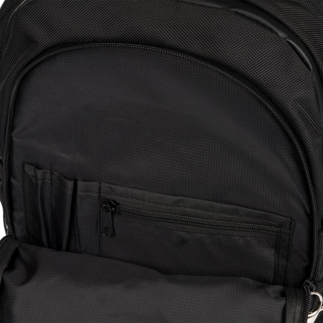 Hoofdcompartimenten met interne organiser en zijvakken van netstof voor maximale praktische bruikbaarheid.