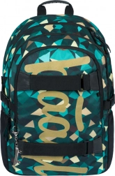 Rugzak met drie afzonderlijk afsluitbare compartimenten, inclusief laptopvak en riemen voor een skateboard. Lichtgewicht en waterbestendig materiaal.