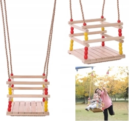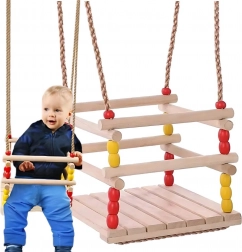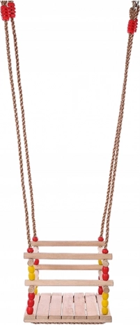 Sterke gevlochten touwen met ringen en beslag zorgen voor stabiliteit en veiligheid. De compacte afmetingen besparen ruimte en de schommel is gemakkelijk te verplaatsen of op te bergen. Gekleurde kralen geven een speelse uitstraling en kinderen zullen de schommel snel geweldig vinden.