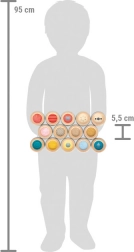 De set bevat 28 houten schijven met kleurrijke en duidelijk voelbare vullingen en een textielen zakje voor het opbergen. Dankzij het compacte formaat is het spel ook perfect voor onderweg – thuis, op de opvang of in de speelhoek.