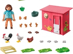 - PLAYMOBIL-figuur, kippenhok, 2 kippen, haan, 6 kuikentjes, stickers en accessoires