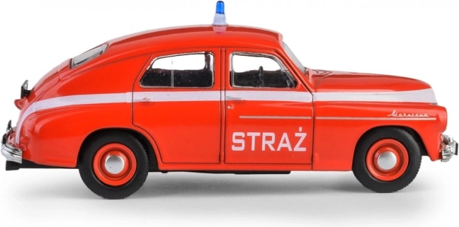 Metalen verzamelmodel Warszawa M-20 in brandweeruitvoering op schaal 1:43 zal liefhebbers van klassieke auto’s en historische techniek bekoren. Dankzij de precisie DIE-CAST afwerking met kunststof details, de officiële FSO-licentie en veiligheid volgens Europese normen is het zowel een geweldig cadeau als een pronkstuk voor in de vitrine. Geschikt voor kinderen vanaf 3 jaar.
