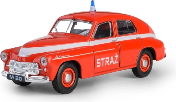 - Authentieke uitvoering van de historische auto WARSZAWA M-20 in brandweeruitvoering.