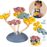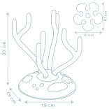 De Little Smoby koraal boom-speeltjes bestaan uit acht kleurrijke kunststof elementen die doen denken aan decoratieve achtpotige en schildpadachtige vormen. Kinderen kunnen de afzonderlijke delen eenvoudig met elkaar verbinden en hun rangschikking aan de takken van de boom veranderen, wat hun creativiteit stimuleert.