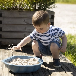 UV-bescherming zorgt voor langdurige kleuren en duurzaamheid van het materiaal. De zandbak is geschikt voor kinderen vanaf 18 maanden.
