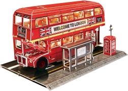 Bouw de iconische tweedeckerse Londense bus van 3D-puzzel CubicFun. De set bevat 72 stukjes van een schuimachtig materiaal en indrukwekkende LED-verlichting, waardoor het voltooide model na het donker prachtig opvalt. De stukjes zijn genummerd en voorgevormd voor eenvoudig bouwen.