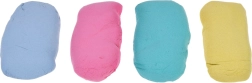 De set bevat 4 zakjes zand van 70 g in de kleuren geel, roze, groen en blauw. Het zand strooit niet en droogt niet uit, en ruikt naar zoete kauwgom.