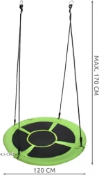 De schommel is eenvoudig op te hangen dankzij touwen met metalen ringen en een stevige haak. Alles wat u nodig heeft, vindt u in de verpakking.
