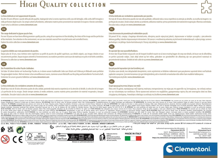 Geniet van het leggen van hoogwaardige puzzels uit de nieuwste CLEMENTONI-collectie. De Puzzel Oude Schoenhuis biedt een uniek ontwerp voor plezier voor het hele gezin.