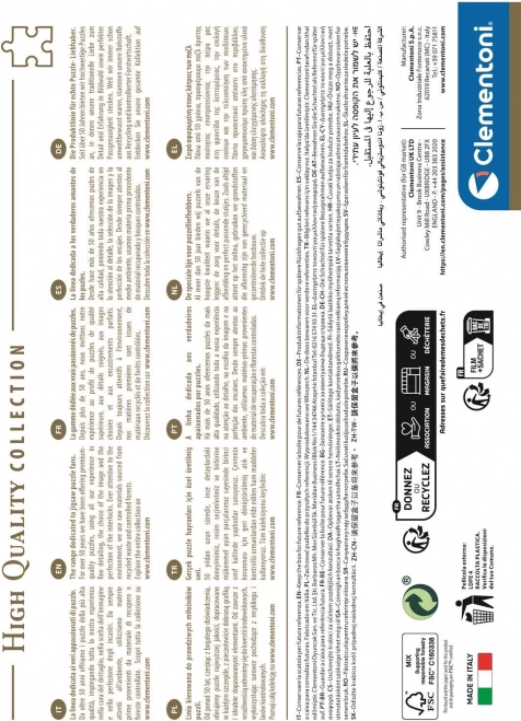 De premium puzzelcollectie van Clementoni brengt het filmische REBEL MOON-motief in een kwaliteit die zowel beginners als gevorderde puzzelaars zal bekoren. Dankzij de nauwkeurige stans en het hoogwaardige karton sluiten de stukjes naadloos aan, waardoor het puzzelen soepel en plezierig verloopt. De compacte verpakking bespaart ruimte, maar behoudt de luxe afwerking.