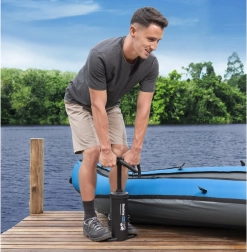 Bestway handpomp is een dubbelwerkende pomp die ideaal is voor het opblazen van matrassen, boten, ballen en andere opblaasbare speeltjes. Het is zeer praktisch en gemakkelijk te bedienen.