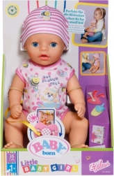De schattige pop BABY born Lena 36 cm is het ideale eerste babypopje voor de allerkleinsten vanaf 1 jaar. Ze biedt 7 realistische functies zonder batterijen – ze drinkt uit een flesje, plast in de luier, gebruikt een potje, kan in bad en dankzij de magische speen doet ze haar ogen open en dicht. Het lichte lijfje en de bewegende ledematen maken aan- en uitkleden en verzorgen extra makkelijk.
