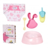 - Rijke set accessoires: flesje, speen aan lint, luier, bordje, lepeltje, potje en meer accessoires voor rollenspel in de verzorging.
