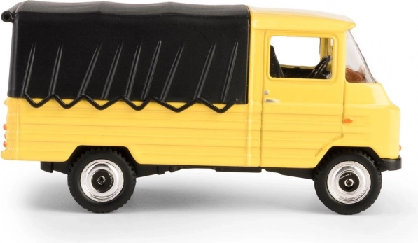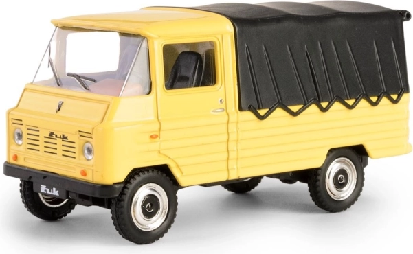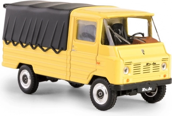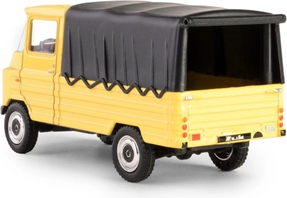 Ontdek een legende in zakformaat: het model FSC Żuk, gebaseerd op de cultstatus Poolse bedrijfswagen die in Lublin werd geproduceerd. Dit verzamelstuk in opvallend geel met zwarte huif vangt trouw de look en proporties van het origineel, inclusief details van cabine, wielen en grille.