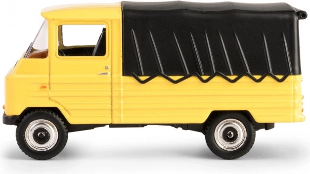 Gele lak, zwarte huif en gedetailleerde wielen geven het model een authentieke uitstraling voor zowel vitrine als speelplezier.