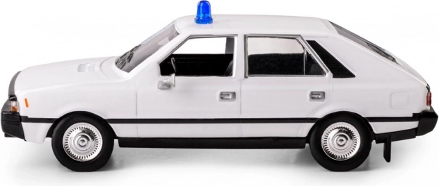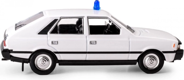 Detailgetrouwe replica van de Polonez uit de serie 07 zgłoś się met blauwe zwaailamp en authentieke carrosserielijnen.