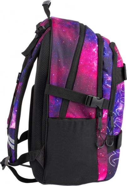 Ontdek de perfecte combinatie van functionaliteit en stijl. De BAAGL Skate Galaxy schoolset biedt een duurzame rugzak met een indeling in drie compartimenten, organizer en een gewatteerd vak voor een 15" laptop of tablet. Ergonomisch gevormde rug, volledig verstelbare schouder-, borst- en zijdelingse compressieriemen zorgen voor gezond en comfortabel dragen de hele dag. Voorste riemen dienen voor het bevestigen van een skateboard, elastische zijvakken bieden plaats aan een drinkfles en reflecterende elementen verhogen de zichtbaarheid.