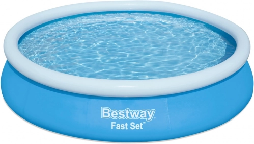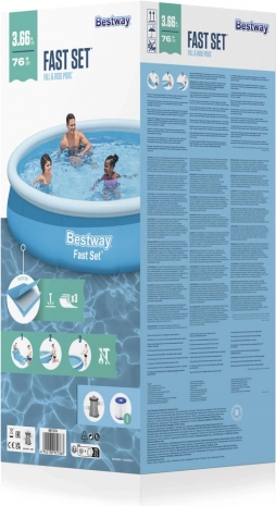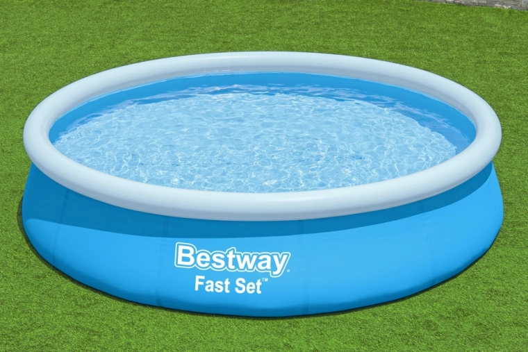 Het opblaasbare bovengrondse zwembad BESTWAY Fast Set is de ideale keuze voor snelle verfrissing in de tuin. De montage is in enkele minuten klaar – blaas de bovenste ring op, laat water in en de wanden komen vanzelf omhoog. Dankzij het stevige materiaal met duurzame afwerking is het bestand tegen dagelijks gezinszwemplezier.