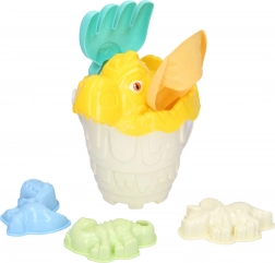 - Emmertje, deksel met zeef, 3× dinosaurusvormpje, hark, schep