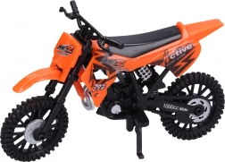 Compacte crossmotor van 12 cm die kleine racers plezier bezorgt met zijn realistische uitstraling en eenvoudige bediening. Hij heeft vrijlopende wielen, is verkrijgbaar in 3 kleurvarianten (oranje, groen, blauw) en is perfect voor spelen thuis en onderweg.