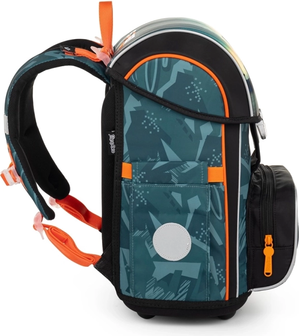 De schoolset met racewagenmotief is ontwikkeld voor kinderen vanaf groep drie. Het bevat een schoolrugzak met anatomisch gevormde rug, die comfortabel dragen mogelijk maakt dankzij zachte en ademende schouderbanden. De rugzak is niet alleen licht maar ook veilig dankzij de reflecterende elementen. Het voorvak is ideaal voor een lunchtrommel en de zijvakken bieden voldoende ruimte voor andere schoolbenodigdheden.