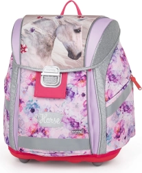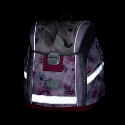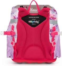 De schoolset Oxybag Premium Light Paard Romantisch is ideaal voor leerlingen van de eerste en tweede klas, ontwikkeld voor maximaal comfort en veiligheid. De rugtas weegt slechts 970 gram, wat zorgt voor gemakkelijk dragen, terwijl reflecterende elementen de zichtbaarheid van uw kind verhogen. Ergonomisch gevormde rug samen met gewatteerde schouderbanden bieden uitstekende ondersteuning en comfort. Het overzichtelijke hoofdcompartiment met scheidingswand en praktische vakken bieden voldoende opbergruimte.