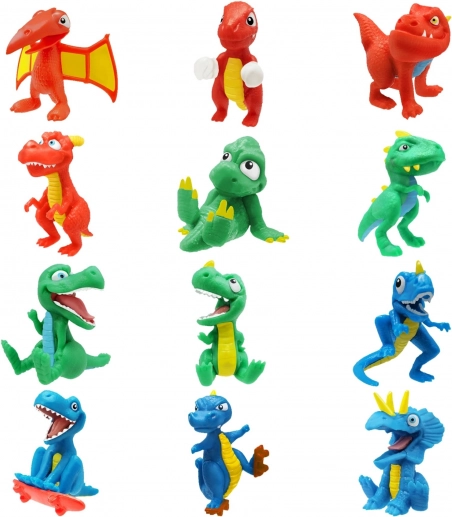 - 12 assorti’s – kleurrijke slijmen en verschillende dinosaurusfiguren.