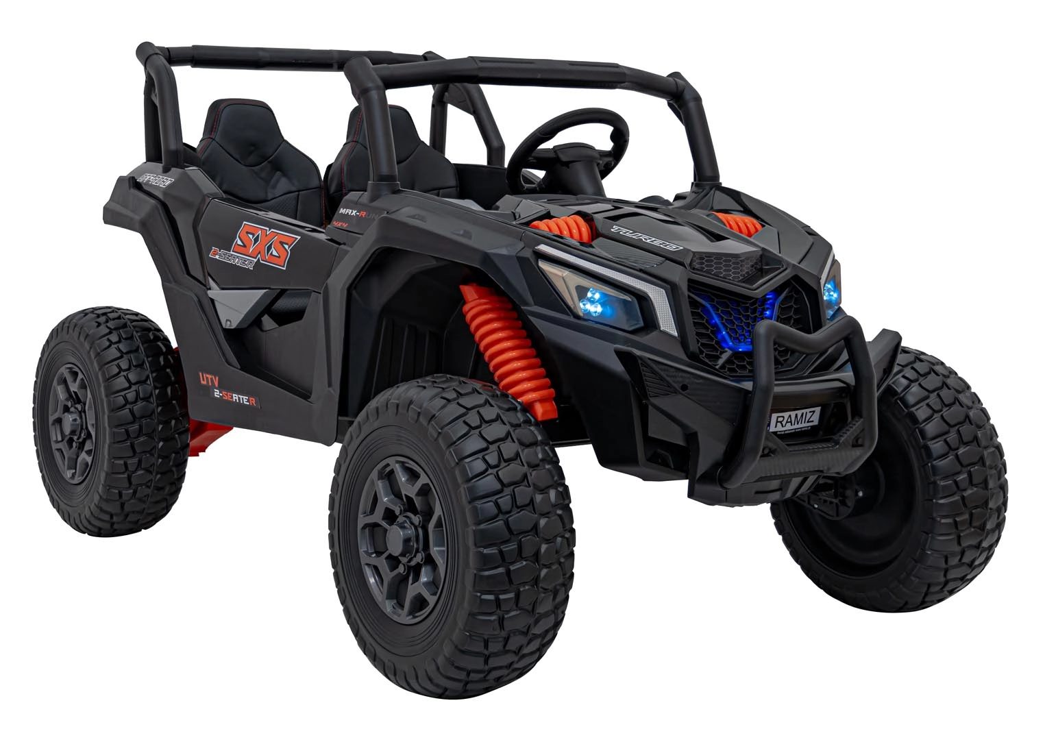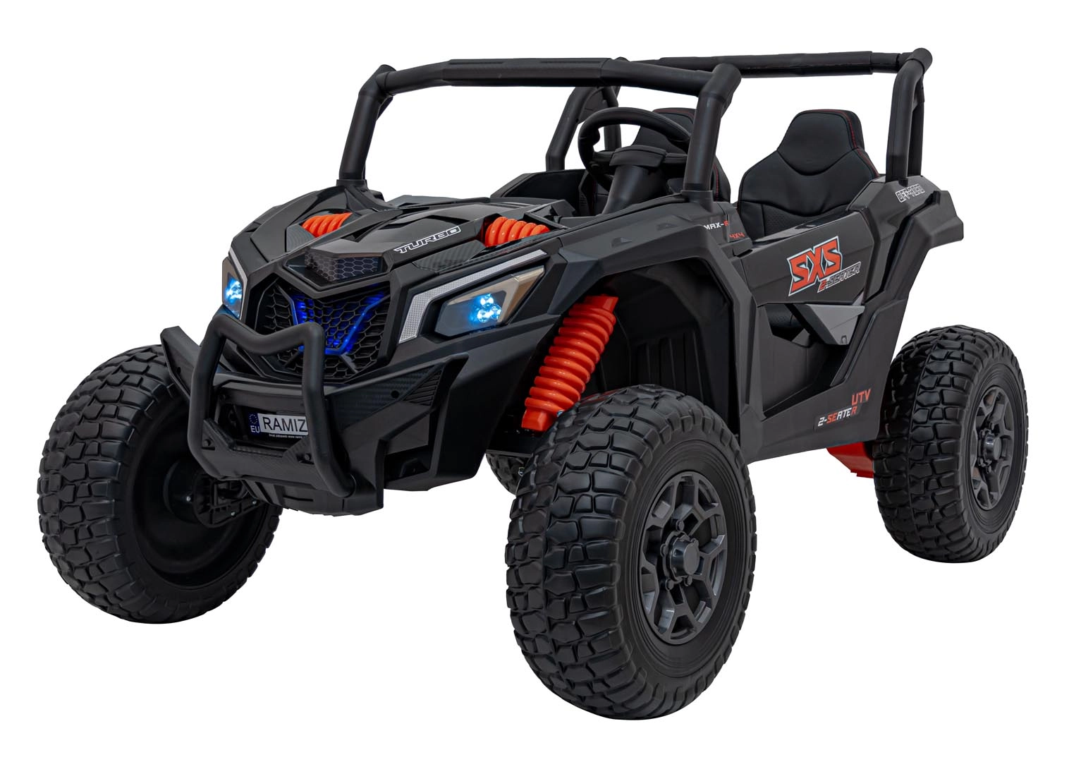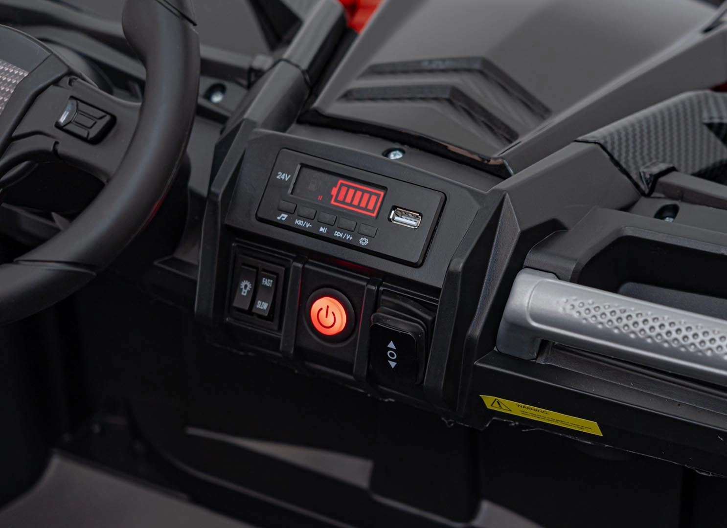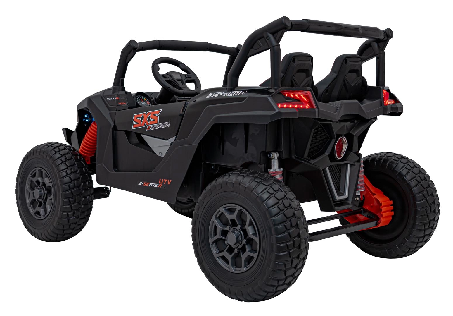 Ontdek spannende ritten met het terreinvoertuig UTV X3 in het zwart. Deze robuuste en stijlvolle wagen is ideaal voor avonturen op elk terrein. Dankzij de 24V-accu en de krachtige 4x200W motoren biedt hij ongeëvenaarde prestaties voor zowel kleine als grote bestuurders.