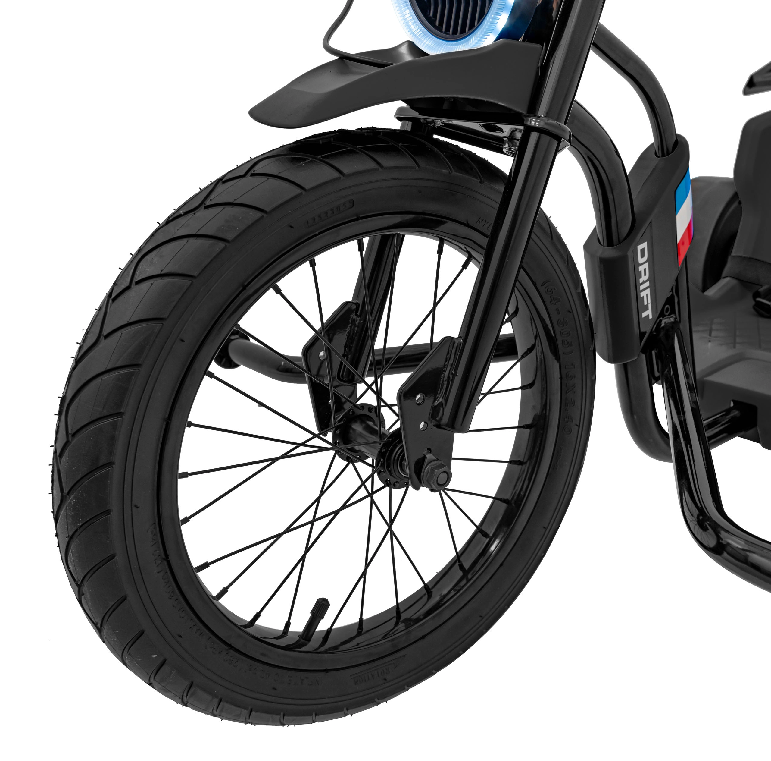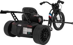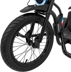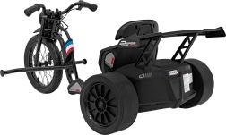 De Drift Bike 21 is een driewieler ontworpen voor maximaal plezier en zekere controle. Het grote voorste luchtbandwiel van 41 × 7 cm met spaken zorgt voor goede grip en soepel sturen, terwijl de achterste kunststof drifrollers van 28 × 11 cm gecontroleerde drifts mogelijk maken. Voor veiligheid en comfort zorgt de sportstoel met tweestapsverstelling en een stevige zit, ook bij langere ritten.