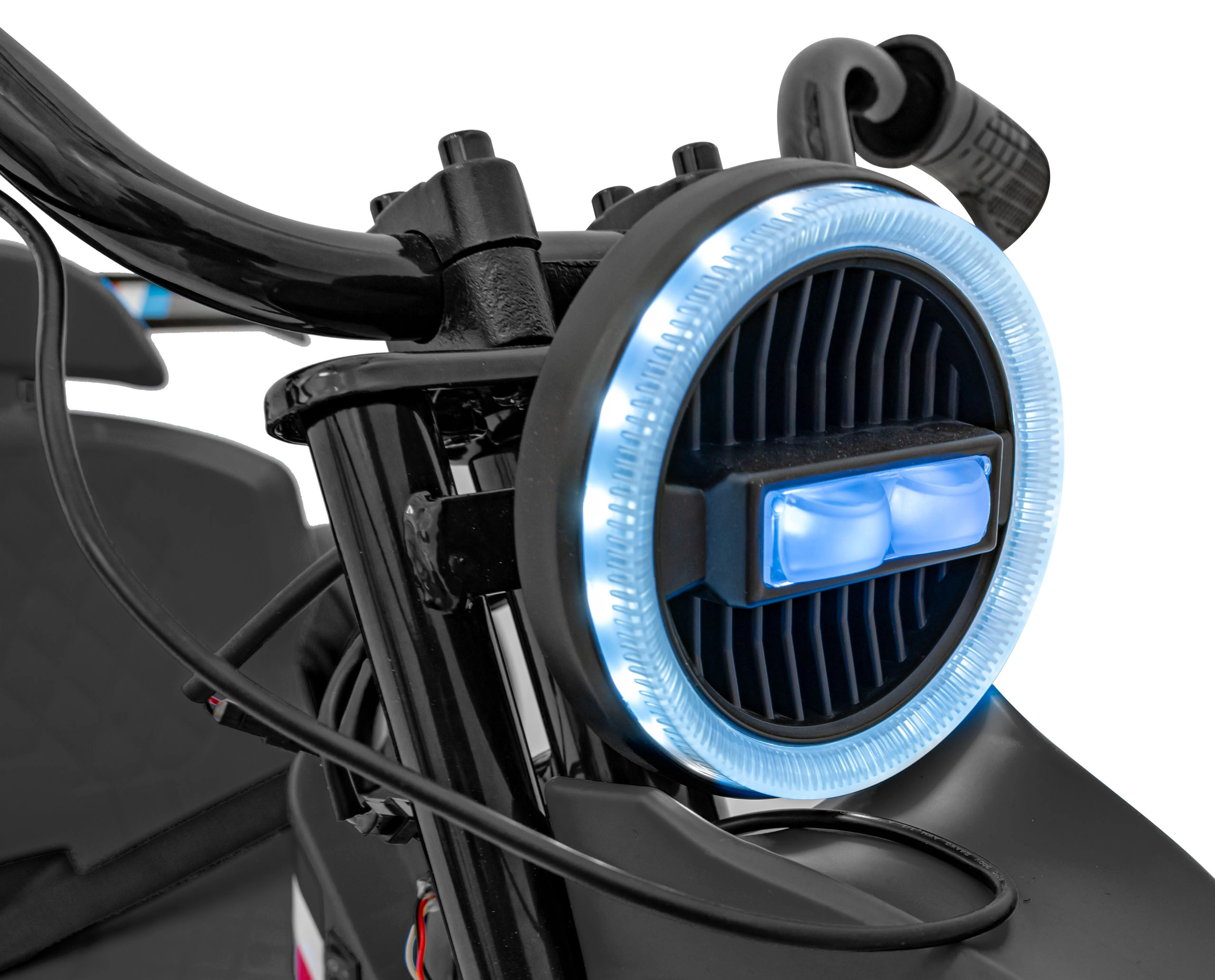De ronde LED-koplamp verbetert de zichtbaarheid en geeft de trike een moderne look. Een aparte schakelaar maakt snel aan/uit mogelijk.