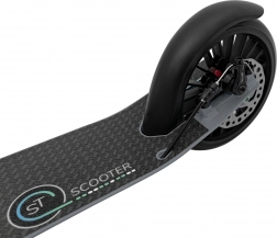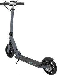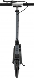 Voor de veiligheid is de step uitgerust met een dubbel remsysteem – een handmatige schijfrem achter en een voetrem op het spatbord. Drie trappen hoogteverstelling van het stuur (85–99 cm) past zich aan bestuurders van verschillende lengtes aan en ergonomische rubberen handvatten bieden comfort, ook op langere ritten.