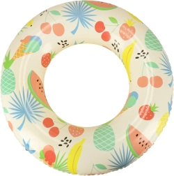 Een speelse print met bananen, watermeloenen en andere motieven zorgt voor extra plezier tijdens het zwemmen en kinderen gebruiken de ring graag.