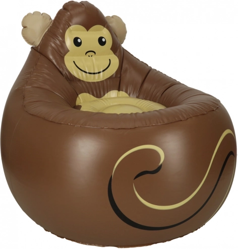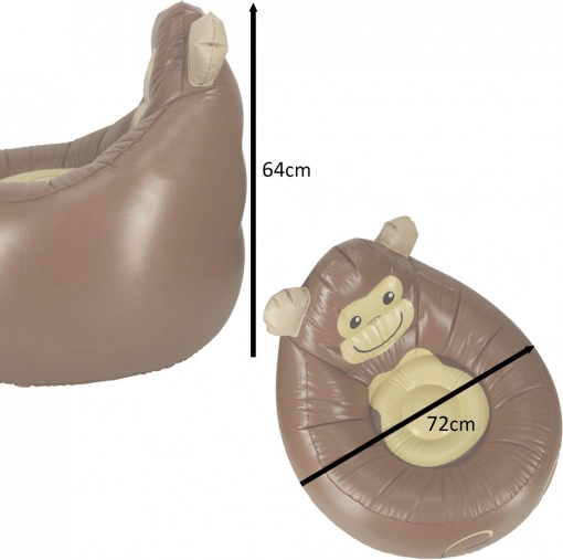 Schattige opblaasbare kinderfauteuil in de vorm van een lachend aapje brengt veel plezier in de kamer en in de tuin. Comfortabele constructie van duurzaam PVC, compacte afmetingen en een draagvermogen tot 70 kg zorgen voor veilig en prettig zitten voor kinderen van verschillende leeftijden. Na het leeglaten is hij makkelijk op te bergen en repareren is eenvoudig dankzij de meegeleverde patch.