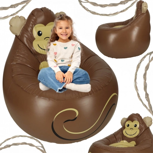 Breng speelsheid en comfort in de kinderkamer. De opblaasbare fauteuil met aapjesmotief moedigt kinderen aan tot rusten en lezen en dient tegelijk als stijlvolle interieuraccessoire. Dankzij de zachte maar stabiele zitting is zitten uitzonderlijk comfortabel.