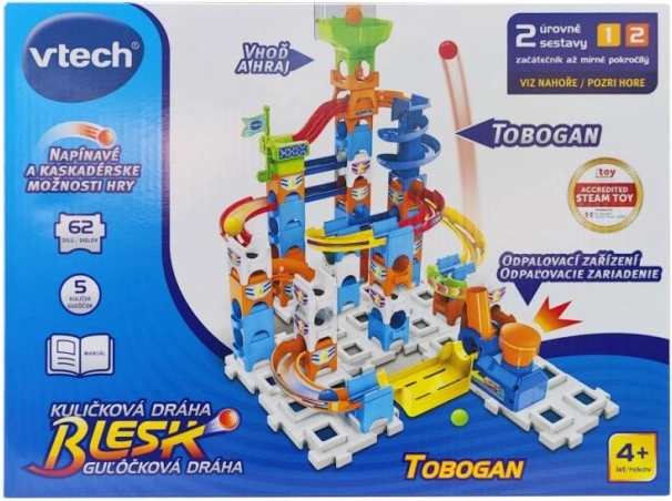 Ontdek het plezier met de knikkerbaan Blesk – een creatieve bouwset die eindeloze bouwvarianten, razendsnelle afdalingen als in een tobogan en familiewedstrijden biedt. De baan is te combineren met andere sets en wordt geleverd met een kleurrijke handleiding, 62 onderdelen en 5 knikkers voor direct speelplezier.