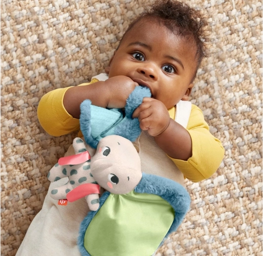 Een schattig knuffeldoekje van Fisher‑Price uit de collectie Planet Friends maakt baby’s vanaf 3 maanden blij. Het heeft zachte, pluizige oortjes, verschillende texturen voor zintuiglijke prikkels en contrasterende kleuren voor de ontwikkeling van het zicht. Het is licht voor kleine handjes, machinewasbaar en gemaakt met respect voor de planeet van gerecyclede materialen.