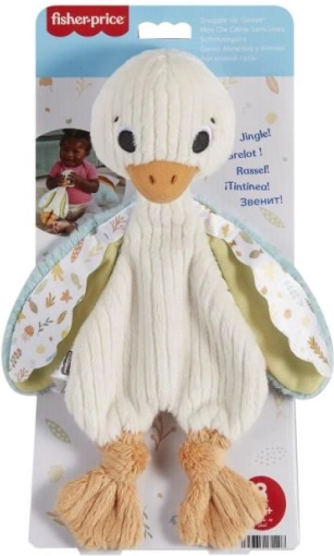 De sensorische pluchen gans van Fisher-Price is ontworpen om te kalmeren, te knuffelen en de eerste ontdekkingen van de wereld te ondersteunen. Het heerlijk zachte lijfje en de vleugeltjes van diverse materialen nodigen uit tot aanraken, terwijl het zachte gerinkel van het belletje bij beweging de aandacht en het gehoor bevordert.