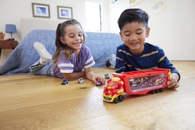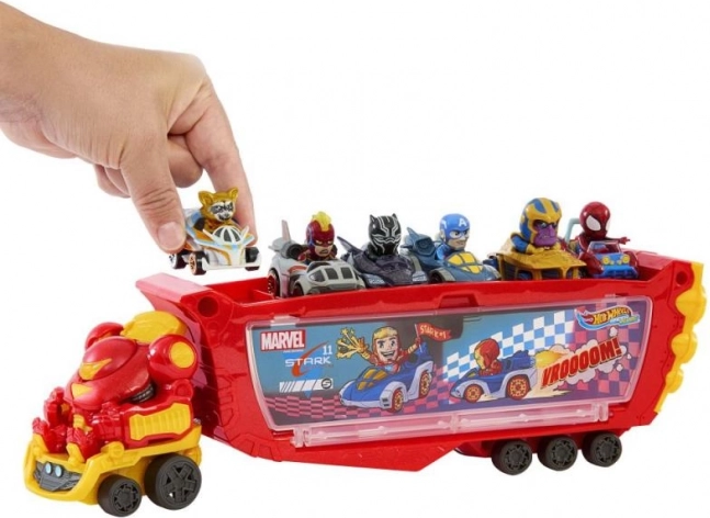 Kinderen kunnen de voorcabine loskoppelen en er afzonderlijk mee spelen. Til je het vizier op, dan wordt een niet-verwijderbaar figuurtje van Tony Stark op de bestuurdersstoel zichtbaar, wat verhalen en creatieve scenario’s stimuleert. De transporter biedt plaats aan tot 10 autootjes van Hot Wheels RacerVerse of standaard Hot Wheels-modellen op schaal 1:64.