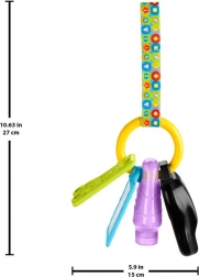Elke hanger aan de ring biedt een andere prikkel: de muzikale sleutel activeert voertuigg eluiden, liedjes en zinnen, de knijpflacon stimuleert de tastzin, het spiegeltje nodigt uit tot zelfontdekking en de getextureerde bijtring verlicht bij doorkomende tandjes. Dankzij de lichte constructie is het speelgoed ideaal voor in de kinderwagen, auto of thuis.