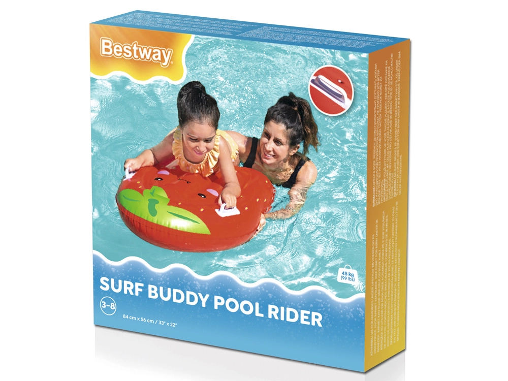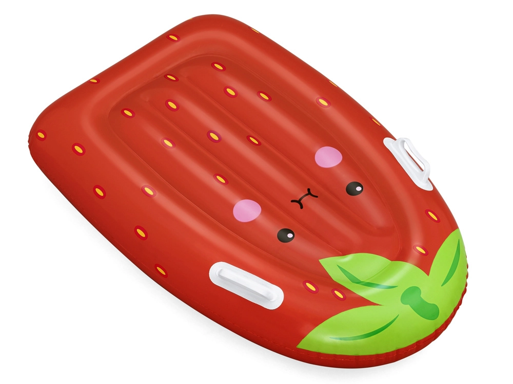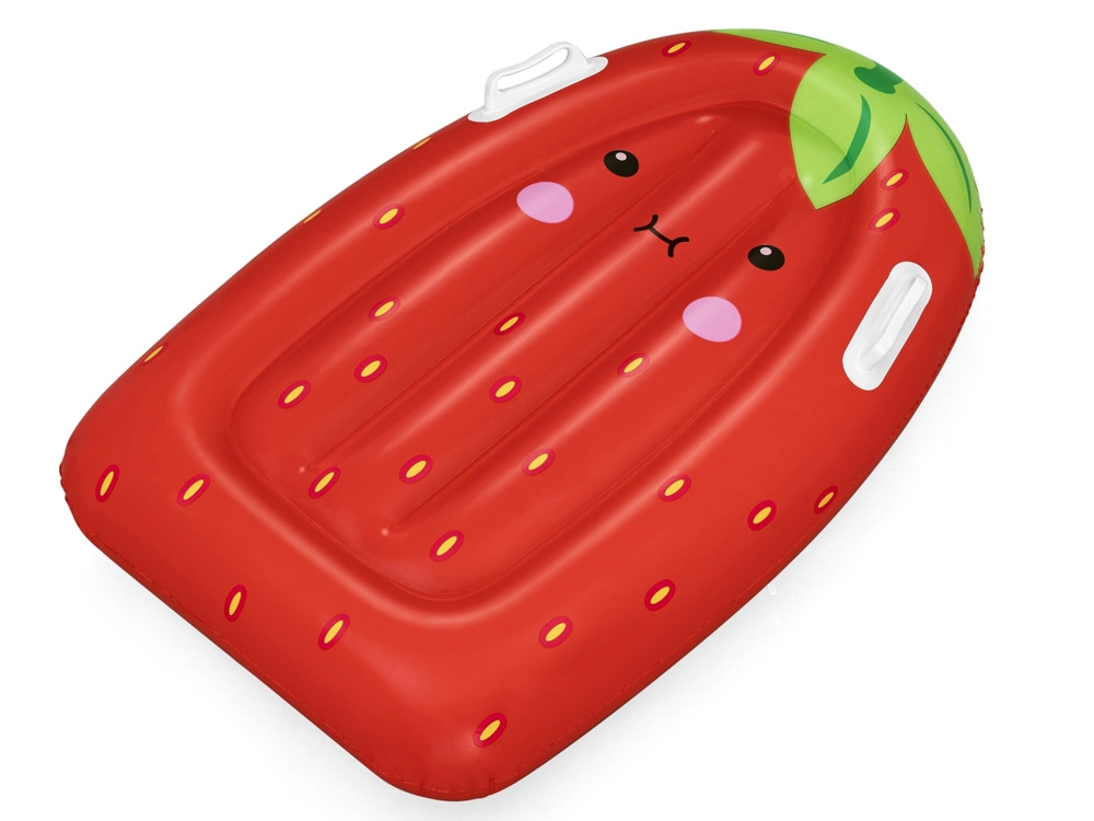 Licht en stabiel opblaasbaar BESTWAY-drijfbord voor kinderen van 3–8 jaar helpt bij de eerste stapjes in het water. Dankzij twee zijhandgrepen biedt het zekerheid, balans en veiligheid bij het oefenen van slagen en trappen. Het vrolijke aardbeidesign en de ergonomische vorm ondersteunen een correcte houding en comfortabel gebruik in het zwembad en aan zee.