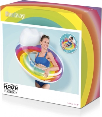 Geniet optimaal van de zomer met deze comfortabele zwemband met een diameter van 107 cm in regenboogdesign. Voorzien van een zacht cloud-hoofdkussen voor comfort, een bekerhouder voor zorgeloos relaxen en duurzaam PVC-materiaal voor een lange levensduur. Eenvoudig opblazen en leeg laten lopen voor snelle voorbereiding op waterpret.