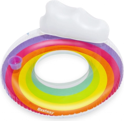 De stijlvolle regenboogband van BESTWAY is ideaal voor zwembad, meer én strand. Dankzij de geïntegreerde rugleuning met comfortabel hoofdkussen geniet je van echte ontspanning op het water, terwijl de praktische bekerhouder je drankje altijd binnen handbereik houdt.