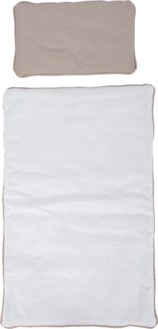Dubbelzijdig beddengoed in zachte kleuren met een grote deken zorgt voor comfort voor poppen of knuffeldieren.