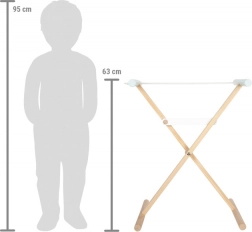 Het praktische en eenvoudig opvouwbare ontwerp van het wasrekje maakt comfortabel opbergen en meenemen mogelijk. Het is uitgerust met vijf katoenen koorden voor veelzijdig gebruik tijdens het spelen. Kinderen eigenen zich op een natuurlijke manier vaardigheden uit het dagelijks leven toe, imiteren hun ouders en ontwikkelen hun creativiteit.