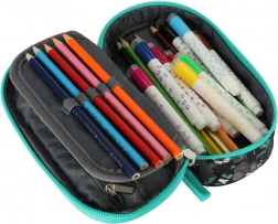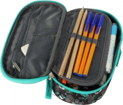 De etui sluit met een rits rondom voor snelle toegang en veilig meenemen. De grafische print op de klep en de thematische binnenprint benadrukken de sportieve stijl. De compacte afmetingen passen gemakkelijk in de rugzak, maar bieden genoeg ruimte voor de dagelijkse schoolspullen.