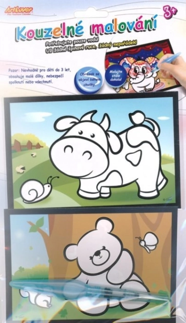 Magisch schilderen met water vermaakt zelfs de allerkleinste kunstenaars. Je hebt alleen water nodig en dankzij de speciale witte laag op de afbeeldingen, die verdwijnt wanneer deze vochtig wordt, kun je magisch gekleurde plaatjes maken. Zodra de afbeelding droog is, wordt deze weer bedekt met een witte laag, waardoor je opnieuw en opnieuw kunt schilderen.