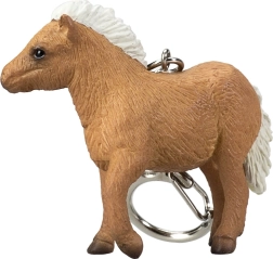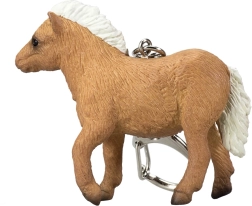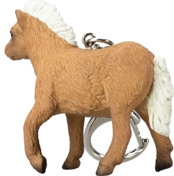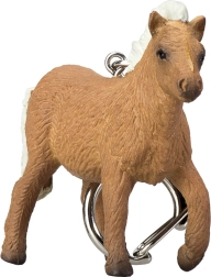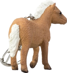 Sleutelhanger met een zeer gedetailleerde miniatuur van een Shetlandveulen.
